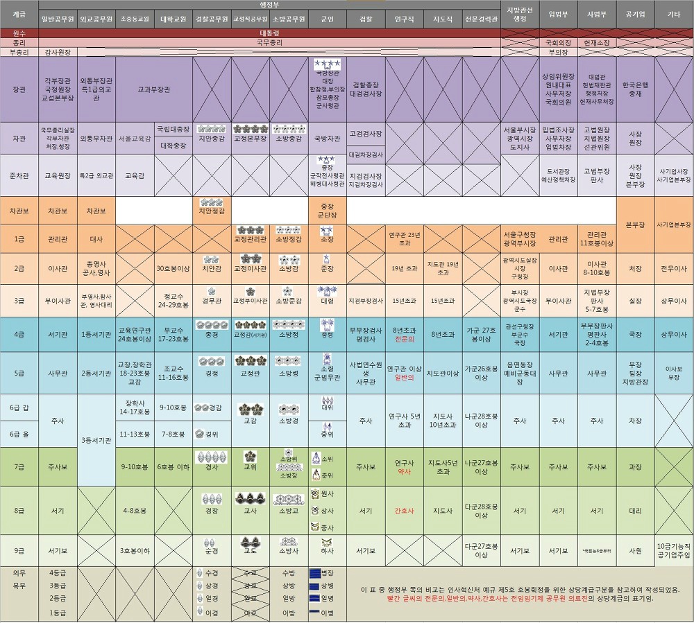 검사의 계급 순위