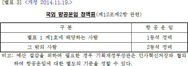 국내선 비행기 운임이야 프리스티지석이나 이코노미나 뭘 타든 1시간 이내에 도착하니 조금 불편함을 감수할 수 있겠지만, 해외 출장시 항공운임은 1호는 1등석 정액을 2호는 2등석 정액을 지급하는군요.