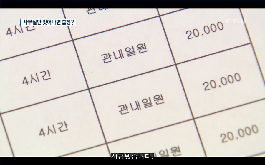 출장비를 받으려면 4시간을 출장을 다녀와야 하는데, 5분도 걸리지 않는 곳을 다녀오고 4시간 출장으로 처리해서 건당 2만 원씩 꼬박꼬박 챙겼답니다.