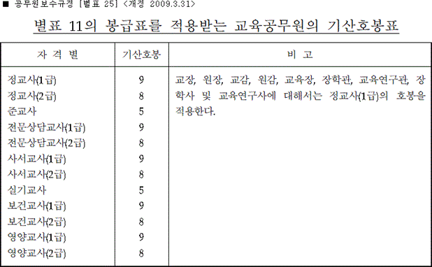 - 정교사 1급 자격증 소지자의 경우 9호봉이 기산호봉으로 적용됩니다.