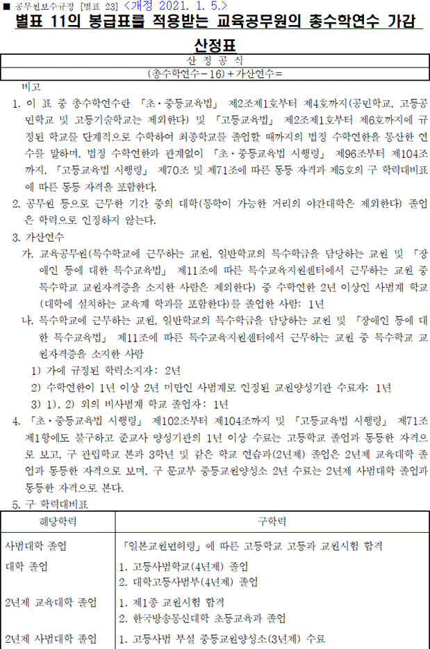 키워드: 교육공무원, 초임 호봉, 경력환산율표, 규정, 학력, 경력