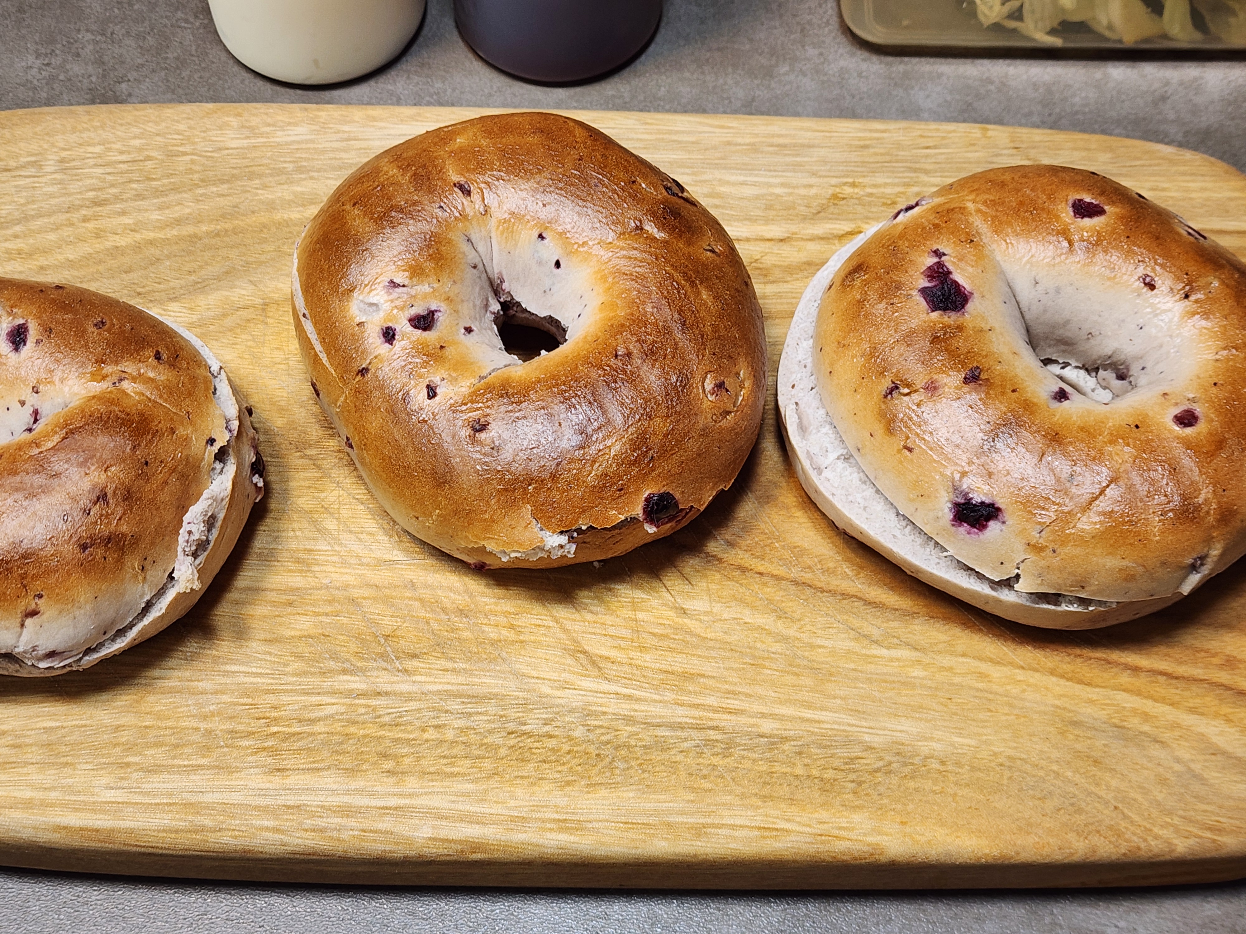 - 베이글을 반으로 자르고, 살짝 구워줍니다.