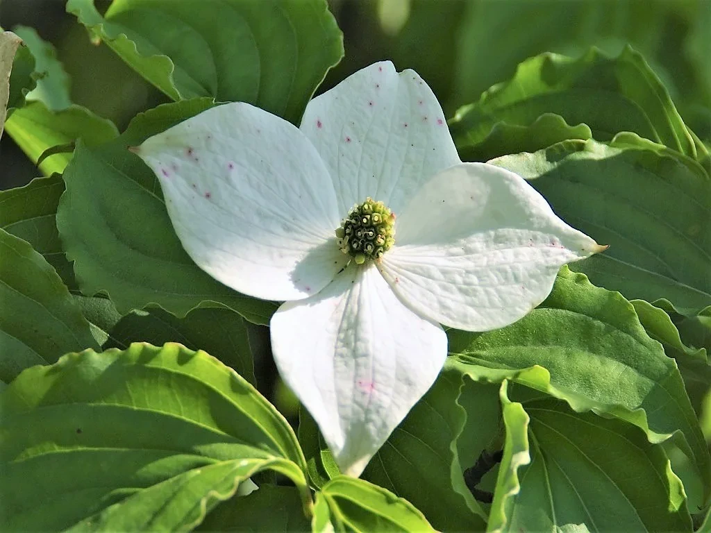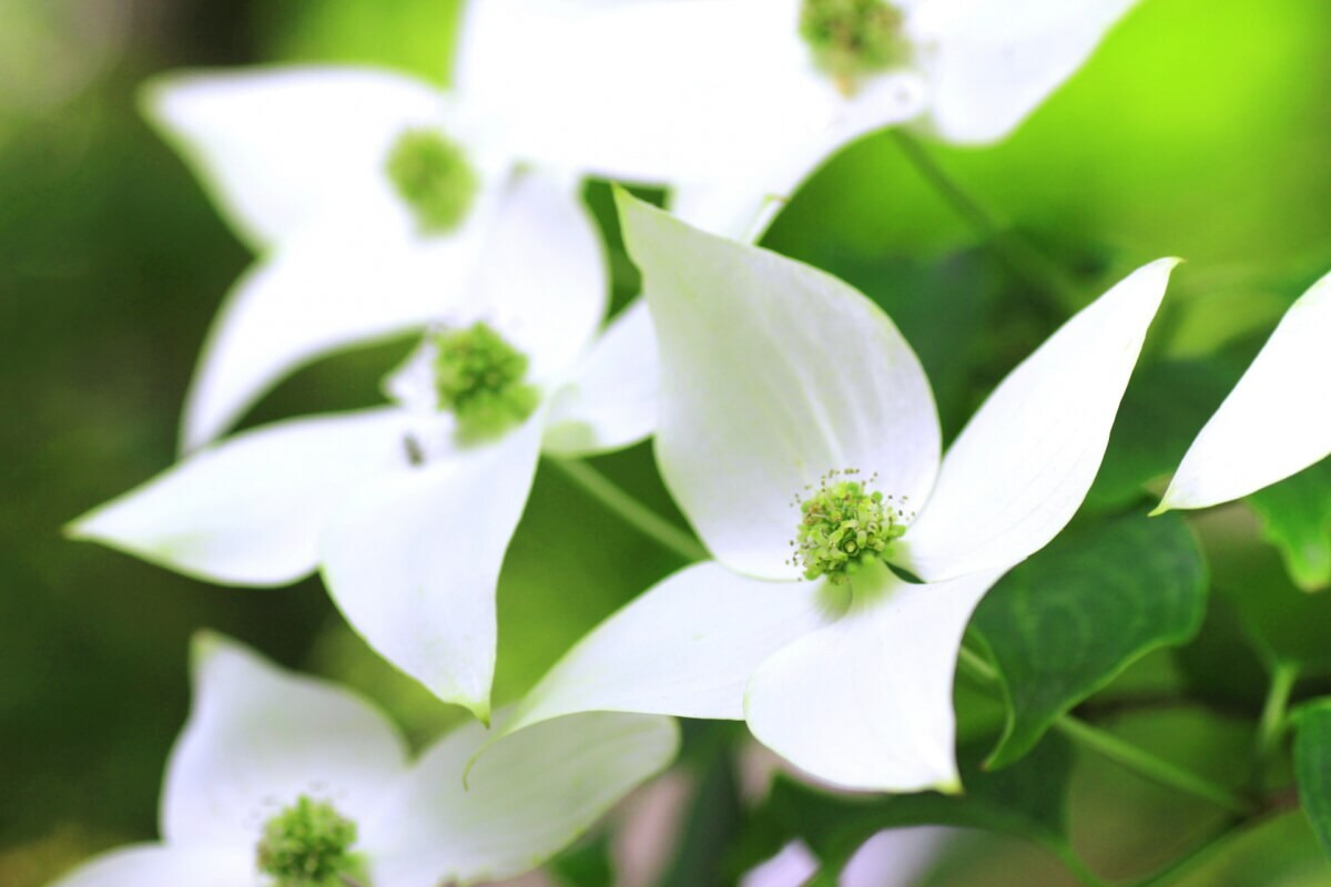 산딸나무의 꽃말은 "신비로움"입니다. 흰색의 아름다운 꽃들은 5~6월에 피어나며, 그 신비로운 아름다움은 많은 이들을 매료시킵니다.