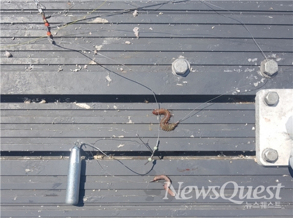4. 두 번째 천평의 상단에 압축 튜 브를 넣어 길이를 좀 더 길게 만들기 위해 준비합니다. 펜치를 사용하여 두꺼운 부분을 오므려줍니다.