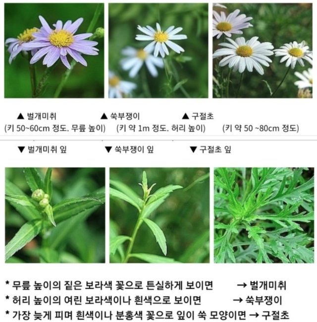 쑥부쟁이, 구절초, 벌개미취 구별법과 특징
