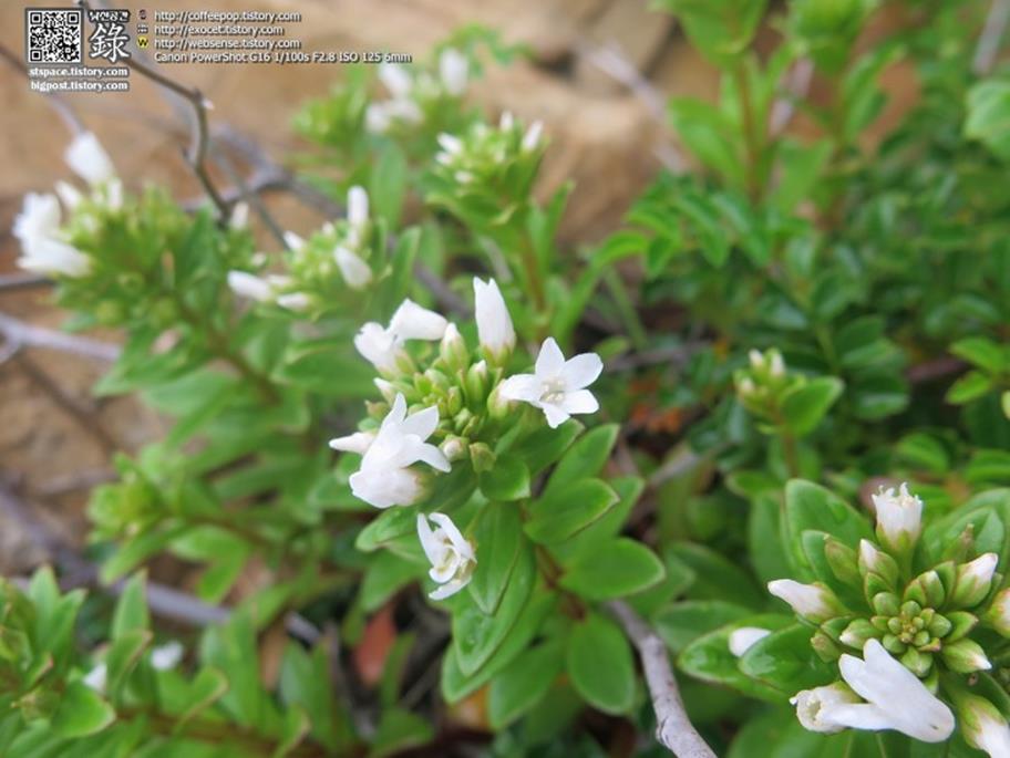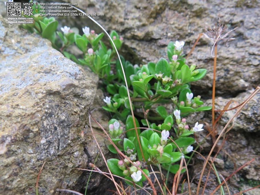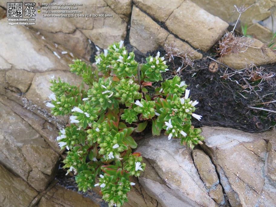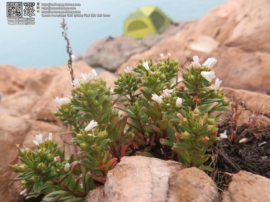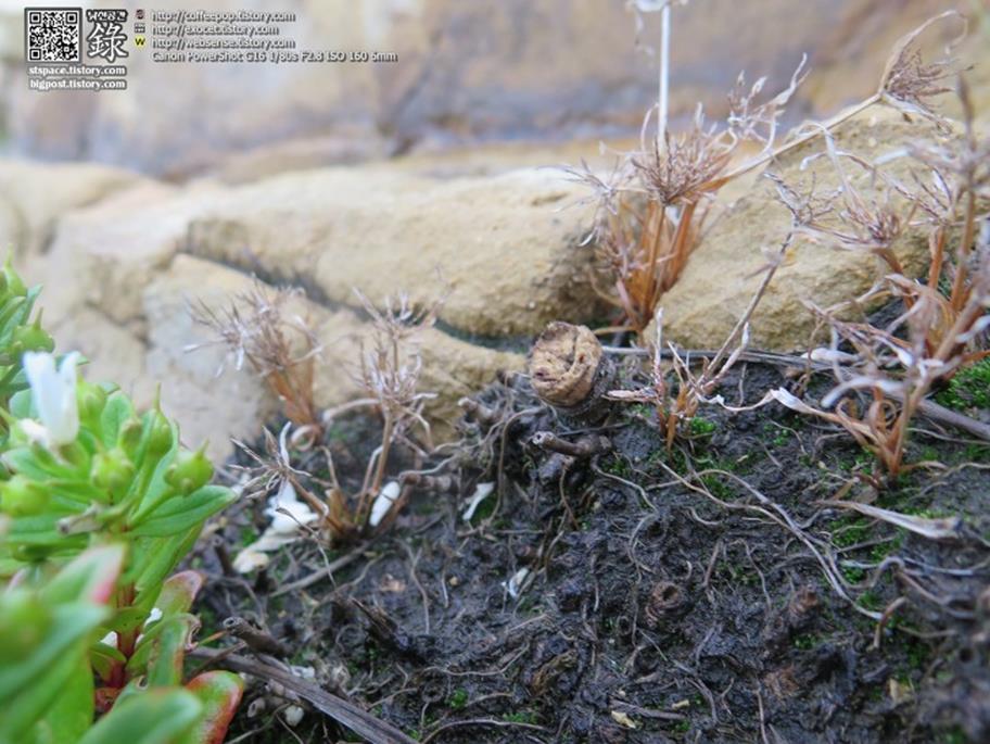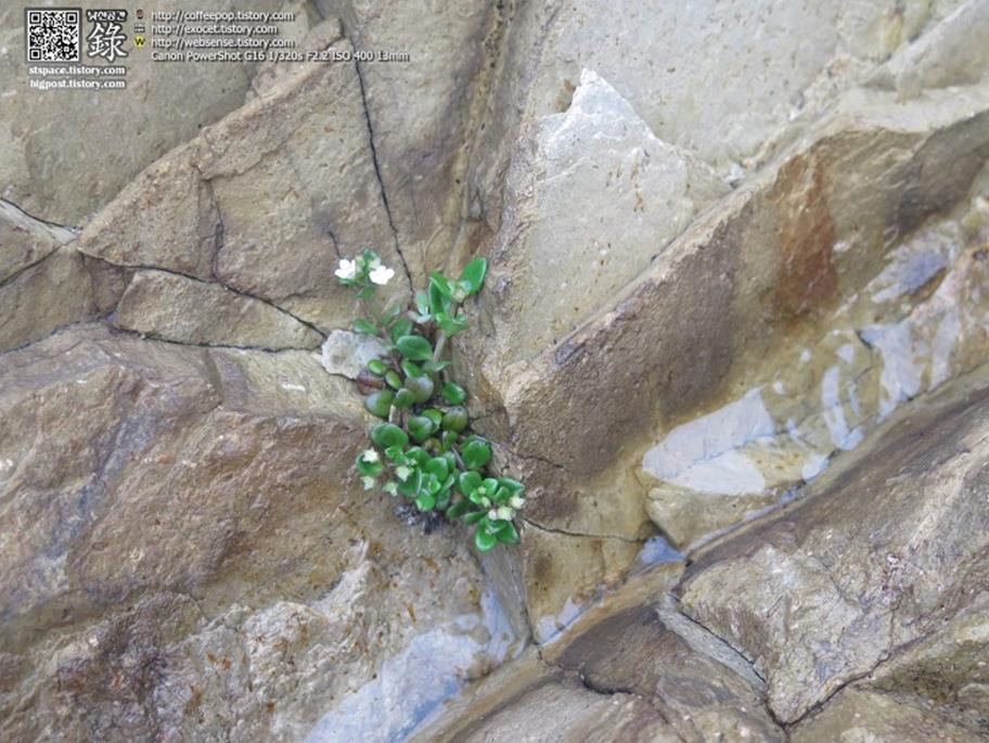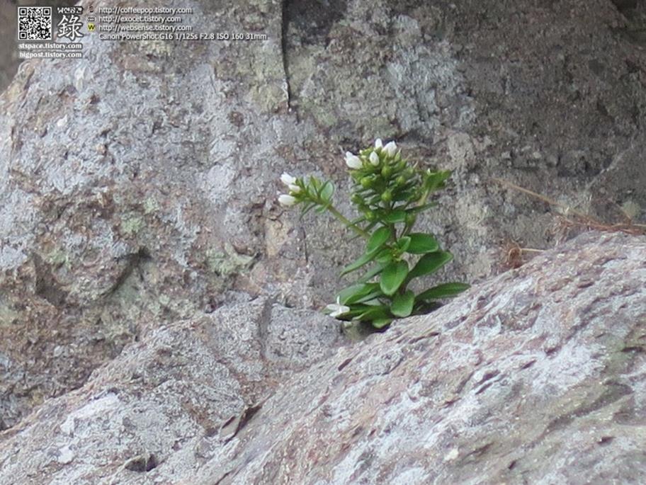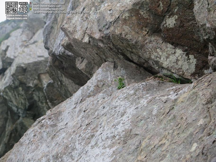 - 이름 모를 꽃대: 약초스러워 보이는 이 야생초는 바위에 단단히 뿌리내려 종자를 맺고 있으며, 푸르른 잎에 소박하게 예쁜 흰 꽃을 피우고 있다. 이름은 모르지만 아름다움에 눈을 뗄 수 없다.
