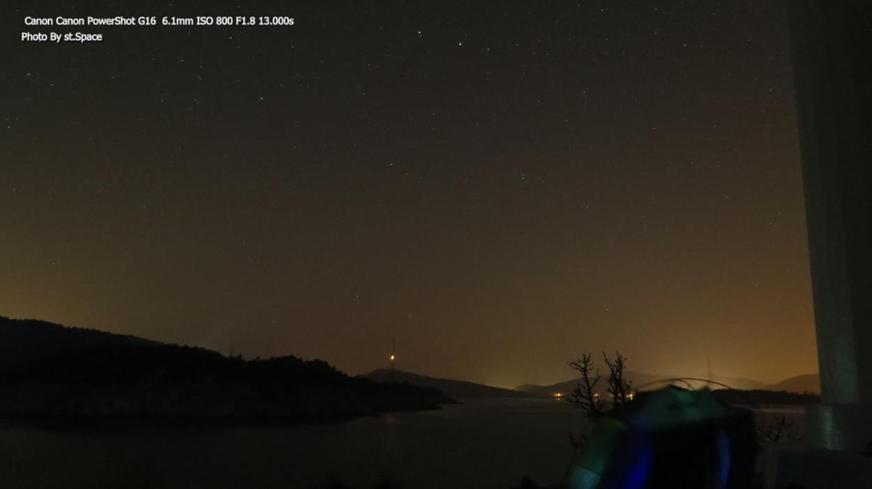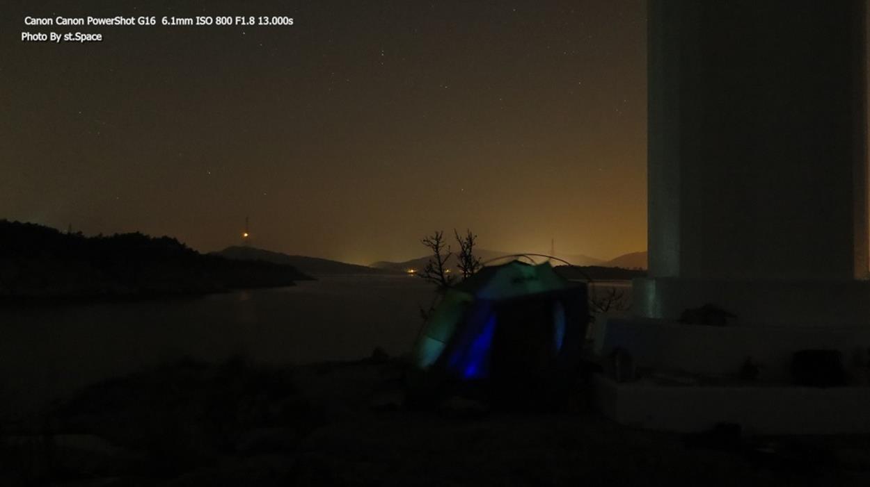 저는 평소에 별을 관찰하고 사진으로 담는 것에 관심이 많았습니다. 하지만, 낚시가 이번 여행의 주 목적이기 때문에 무거운 DSLR 카메라를 들고 다니기 어려웠습니다. 그러던 차에 올해 출시된 캐논 파워샷 G16을 구입하게 되었습니다. 이 카메라는 F1.8의 밝은 렌즈를 가지고 있어 별 사진을 찍기에 최적화되어 있습니다.