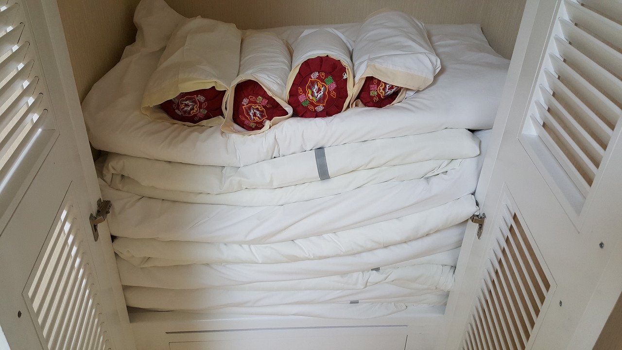 침구는 4인까지 이용 가능합니다만 거실에도 여분의 침구가 2세트 정도 더 있어서 6인까지 이용 가능한 것 같아요.