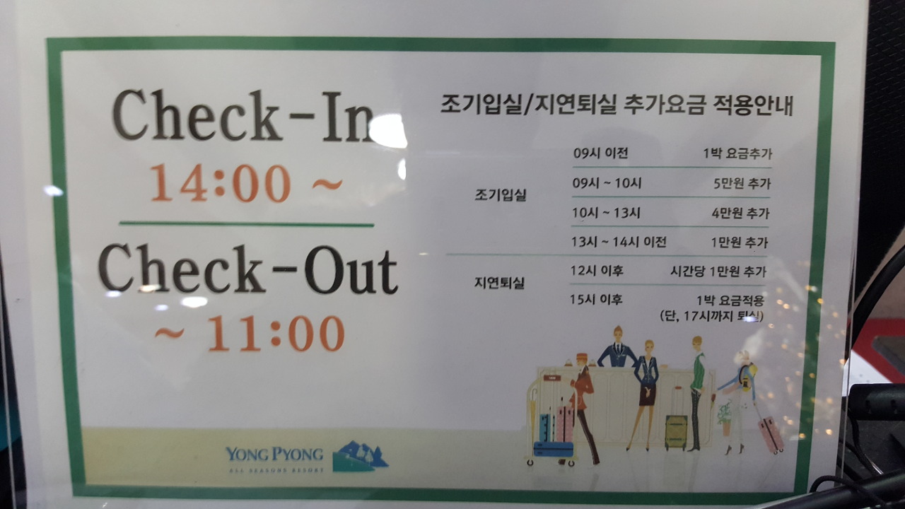 조기 입실이나 지연 퇴실 요금은 아래와 같아요.