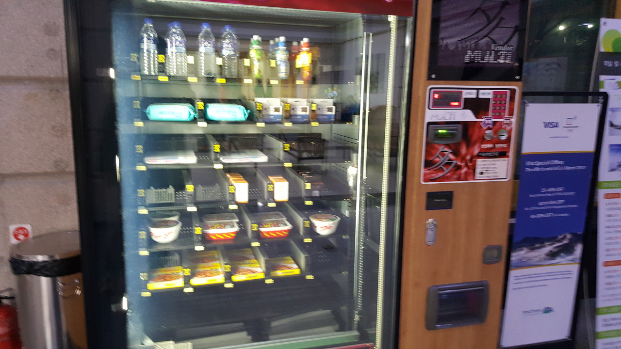 프런트 바로 앞 로비에는 이런 자판기도 있어서 간단한 생수 물티슈 컵라면 3분 요리 세면도구 등을 구입할 수도 있습니다.