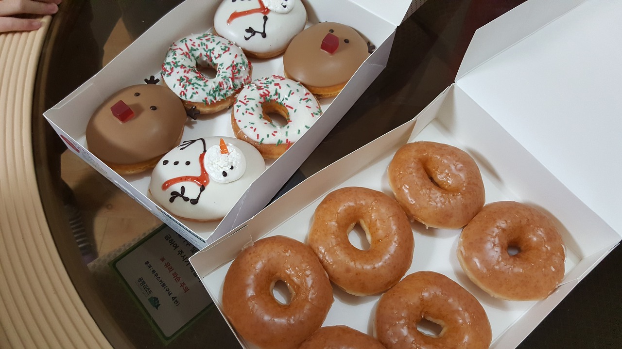 단골 렌탈샵에 들러 부츠와 스키 렌털을 하고 오랜만에 만난 사장님께 매년 최고의 대우를 해 주심에 감사하는 뜻으로 크리스피 도넛 더즌 박스를 선물로 드리고 한참 담소를 나눴어요.