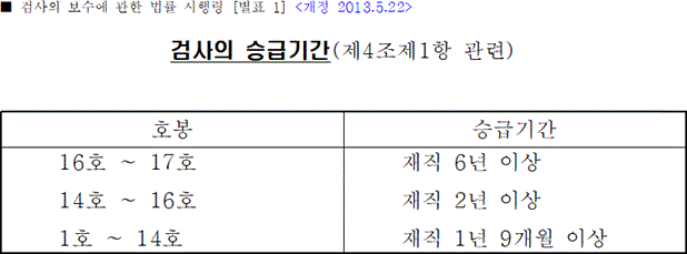 판사나 검사가 직급을 승진하는 데에는 시간이 소요됩니다. 직급이 높아질수록 보조비도 늘어나게 됩니다. 예를 들어, 검사나 판사가 17호봉에 해당하는 경우 매달 2만 원의 가산이 됩니다.
