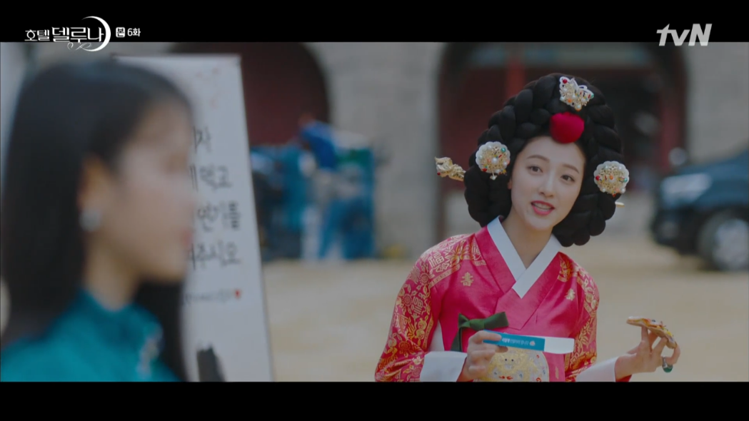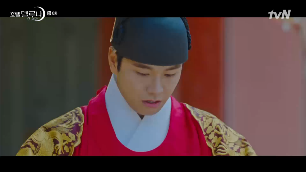호텔 델루나에 왕이 납시었다. 조선이 없어진지 110년째인데... 도대체 왕 귀신은 어디서 헤메다 이제 나타난걸까? 왕이된 남자 패러디 tvm 중전이된 여자에 왕 이현 역으로 출연했던 배우 방태우가 사망해서 왕 귀신이 된 것. 호텔 델루나는 진짜 왕인 즐 알고 vvip대접. 나중에 장만월은 속은 것을 알고 본 전을 뽑기 의해 방태우를 출연 시킨다. 중전이 된여자 이현 역을 맡은 이이경. 특별 출연이겠지? 그나저나 이 중전역 배우는 누구?사혼식 신부역 김미은 5화에 나온 사혼식 신부 귀신 역은 김미은이라는 신예 배우라고 신문 기사도 나던데... 아무튼 장만월은 이이경에게 방태우 귀신을 빙의 시켜 신들린 연기를 하게 해서 출연료를 갈취했다.