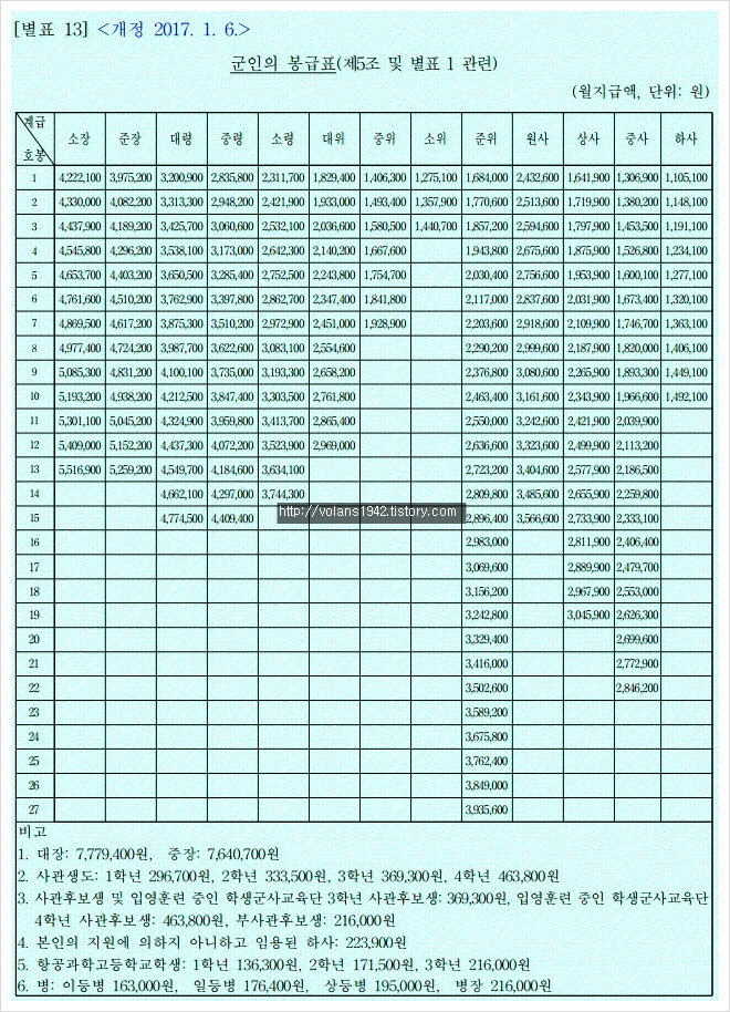 그리고 기본적으로 장교 월급과 부사관 월급은 계급 때문에도 차이가 납니다.
