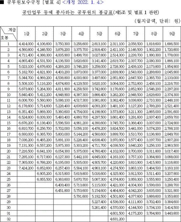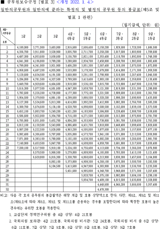 2022 공무원 봉급표입니다.