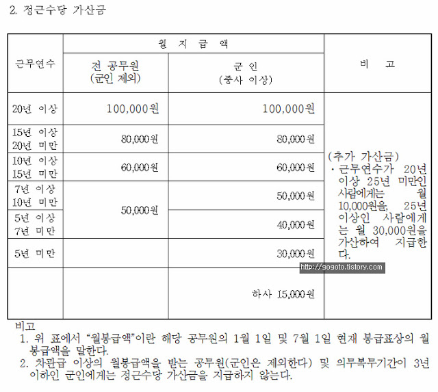 교사 군인 공무원 정근수당 지급기준