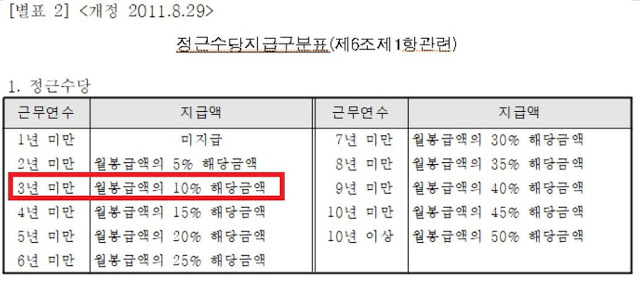 근무연수가 올라갈수록 정근수당도 같이 올라가는데요.