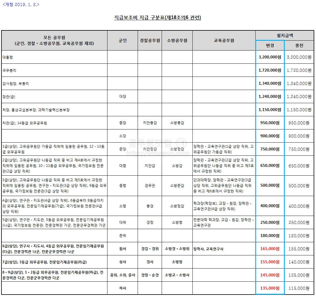 2019년에 공무원 직급보조비는 인상됐습니다.