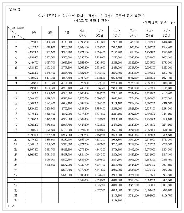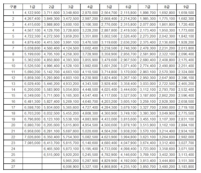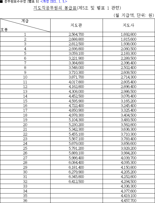 2021년 공무원 봉급표 (2020년 1월 6일 시행 예정)