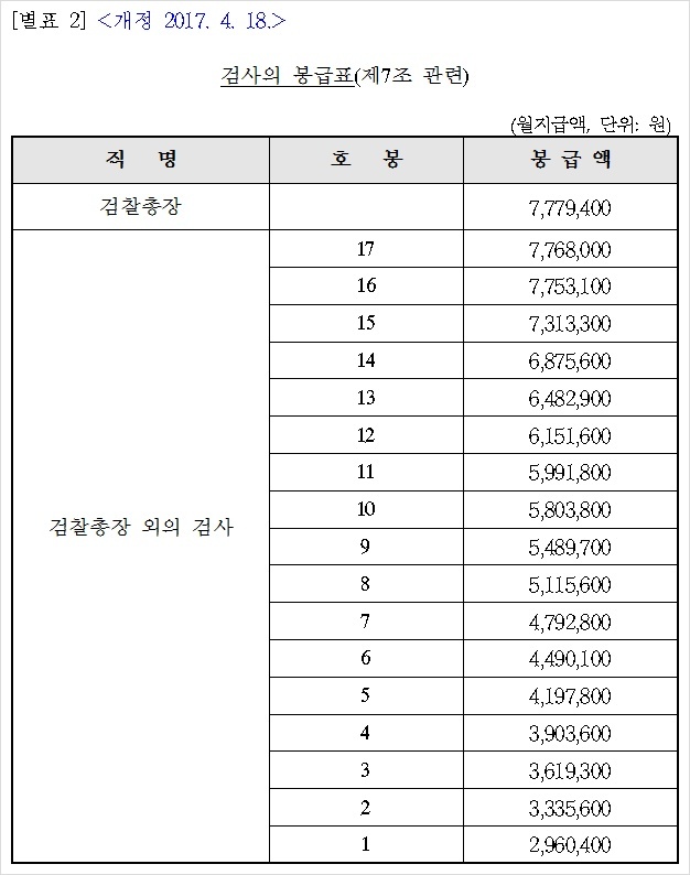 검사 월급 / 검찰 월급표
