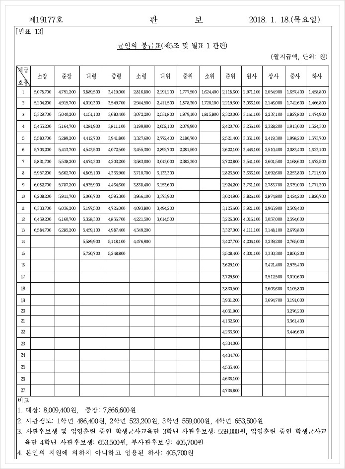 군인 봉급표