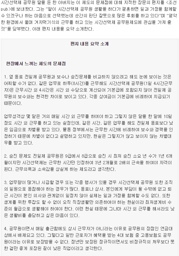 편의점 아르바이트로 치면 파트타임 아르바이트 격인 이 시간선택제는 이름 때문에 받는 오해가 있습니다.